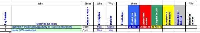 Issues Logs are Common Program Management Tools for Strategic Initiatives