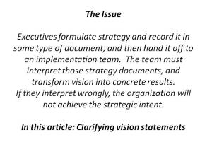 An important task for the leader of a strategic initiative is to bring clarity to the statement of (call it any of the following) strategic intent, vision, outcomes, goals, and business requirements. I introduced Step 1 of a four-part approach for interpreting a strategy (see the side box for a recap of the issue) in a prior post. In this posting, I provide some insights on finding, evaluating, and improving the vision statement.