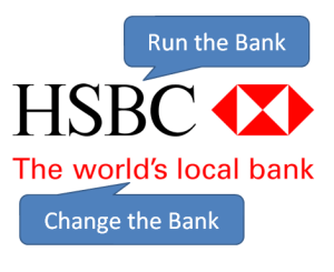 HSBC’s use of the “run the” and “change the” continues and is recognized at the highest levels of the organization. For example, its May 2011 presentation to investors reported performance improvement opportunities in both Change the Bank and Run the Bank categories.